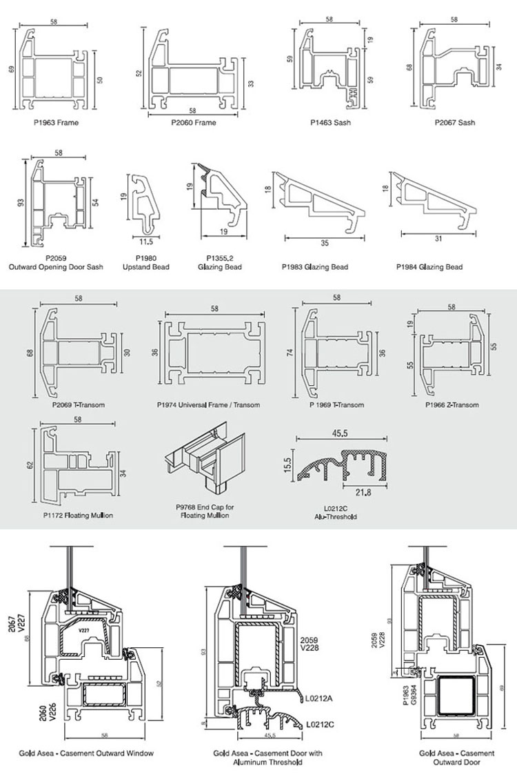 Double Glass Profile System: Gold Asea Size for Design of single sash in frame Height of Frame2Sash French Window Max. Width: 800mm per Sash