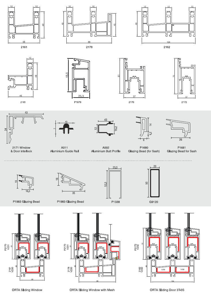 Sizes represent a Design of 2Track / 2Sash in Frame